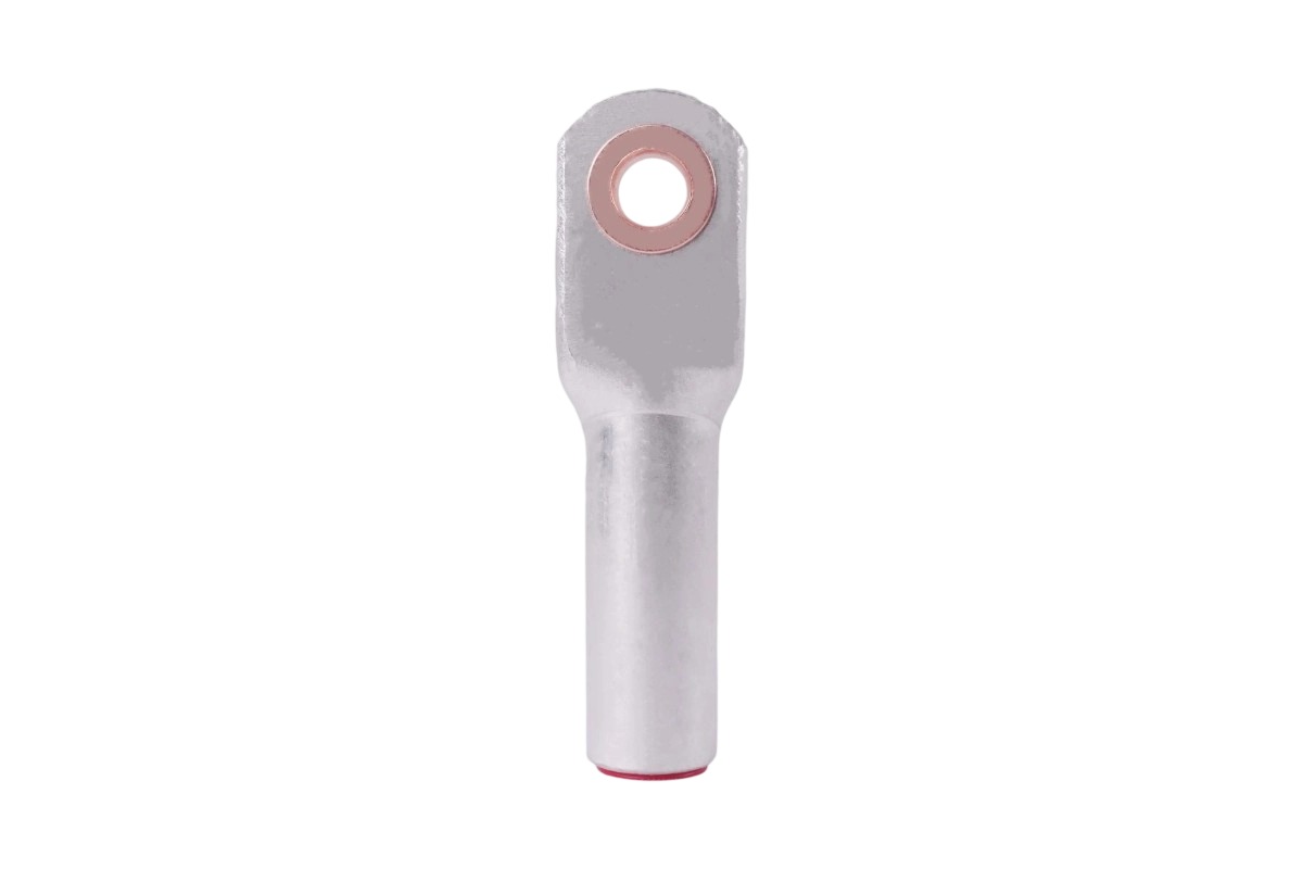 Utilizing advanced friction welding technology, this lug creates a molecular bond between its aluminum conductor barrel and copper terminal section, ensuring optimal electrical conductivity and mechanical strength. Compliant with IEC 61238-1 and AS/NZS 4325.1 standards, it supports conductor cross-sections from 16 mm² to 630 mm² in low to medium-voltage systems (up to 10 kV). Its versatile design makes it suitable for diverse applications where reliable transitions between aluminum cables and copper busbars or equipment terminals are required, combining the cost-effectiveness of aluminum conductors with the connectivity advantages of copper.