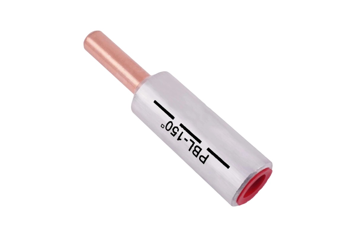 PBL Copper Aluminum Pin Type Terminals are designed for secure connections in non-tension aluminum cables, particularly for tight copper clamps. Utilizing advanced friction welding technology, these terminals ensure strong, reliable bonds. The aluminum barrel is filled with neutral grease and sealed with a cap, offering enhanced protection against corrosion. With a pre-rounded, fan-shaped conductor and high-quality materials (Cu ≥ 99.9%, Al ≥ 99.5%), they provide superior conductivity and durability for various industrial and electrical applications.